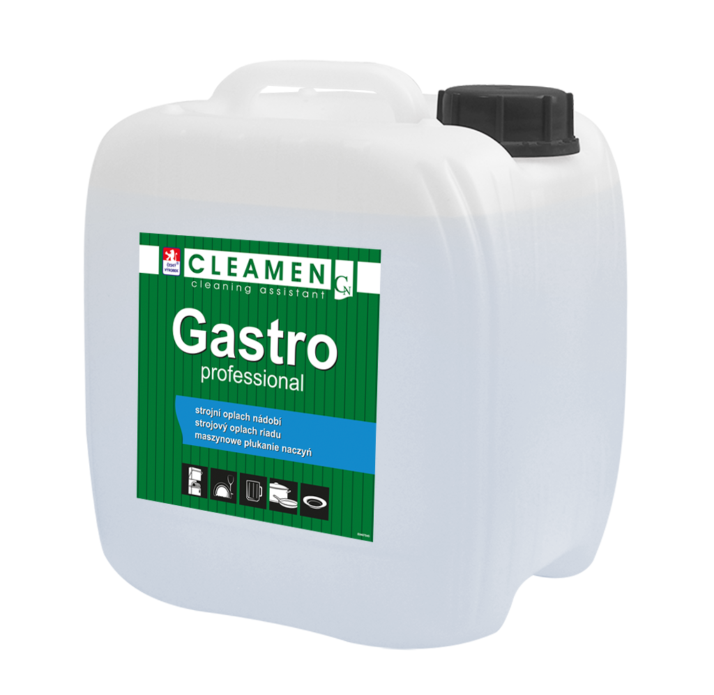 Tekutý oplachový a lešticí prostředek pro profesionální myčky nádobí a skla. Je vhodný jako druhá fáze po prostředku CLEAMEN Gastro Professional Strojní mytí nádobí nebo CLEAMEN Gastro Professional Strojní mytí nádobí PLUS. Připojte k dávkovacímu čerpadlu myčky.