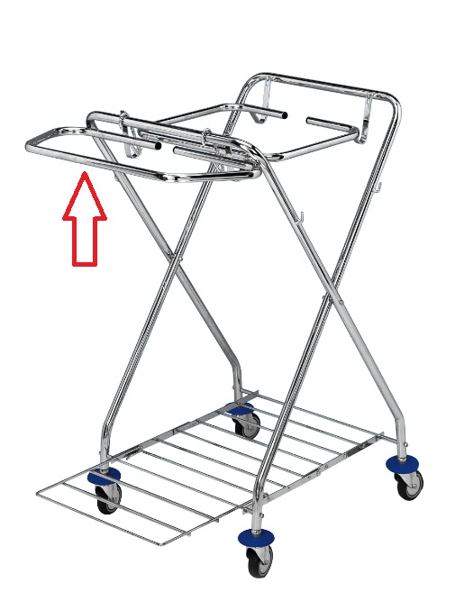 Pozikovaný držák pytle 120 l boční na X vozík. Doporučujeme doplnit jej roštem na X vozík.