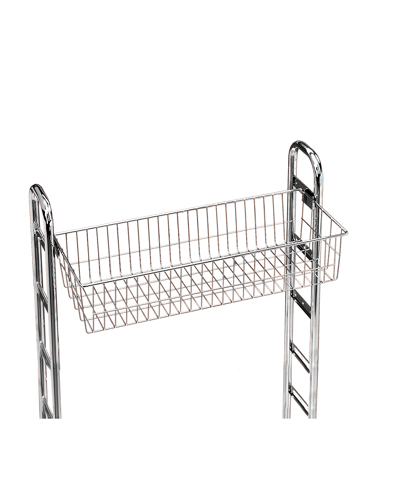 Drátěný pochromovaný koš Kombi velký je součástí vozíku Kombi Super.