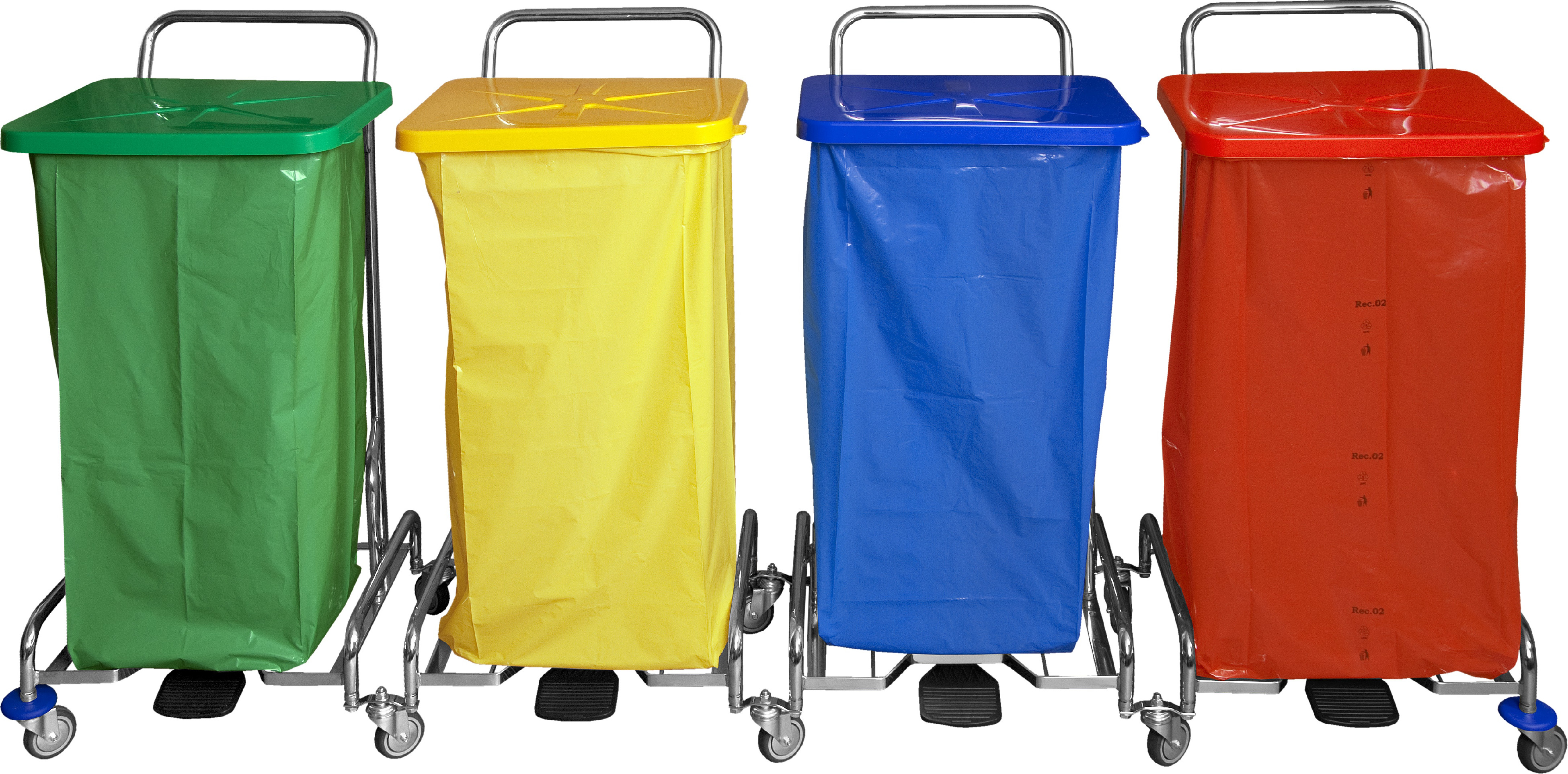 Vozík na odpad ovládaný nožním pedálem. Podvozek je osazen kolečky pr. 75 mm. Velice pohodlné ovládání nohou bez nutnosti dotýkat se víka rukou. Slouží k instalaci pytlů 120 l, ale lze objednat i jako variantu na pytle 70 l. Případnou preferenci prosím zapsat do poznámky. Na každém držáku pytle jsou 3 spony na pytel. Igelitový pytel není v ceně.